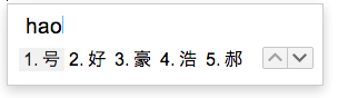 當您輸入像是「hao」的拼音時,畫面上就會出現所有與您輸入內容相對應的候選文字。