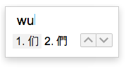 - 使用向左/向右方向鍵瀏覽同一頁內的候選文字清單。使用向上和向下方向鍵或 , 和 . 或 - 和 = 鍵來翻頁。