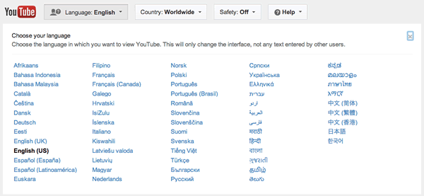 如要變更 YouTube 顯示的介面語言,只要在 YouTube 首頁最下方的部分進行設定即可。